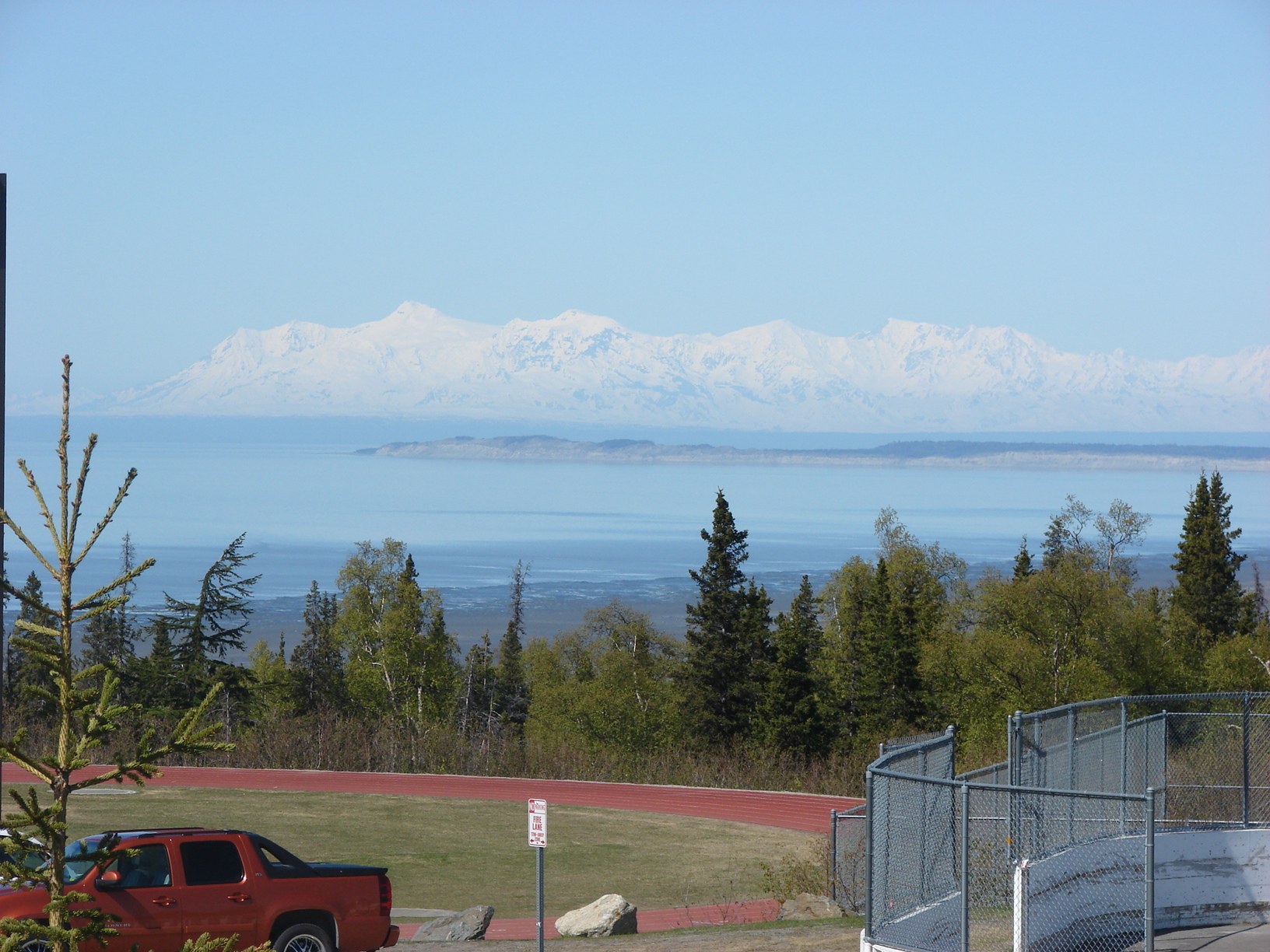 Now Alaska is beautiful, no doubt, but there are days, or even moments within days when the beauty leaves one speechless. This was one of those days. Throughout the ride back to Carol’s, I drank in the glory of this particularly gorgeous day. The snow dappled mountains were in the near ground to my right while the Cook Inlet, Sleeping Lady, and Mt. Redoubt were in the middle and far distance to my left. Stunning. Words and the photos below don’t do it justice. The light up here has a special quality that I have not seen anywhere else. In fact, there are books written on the subject.