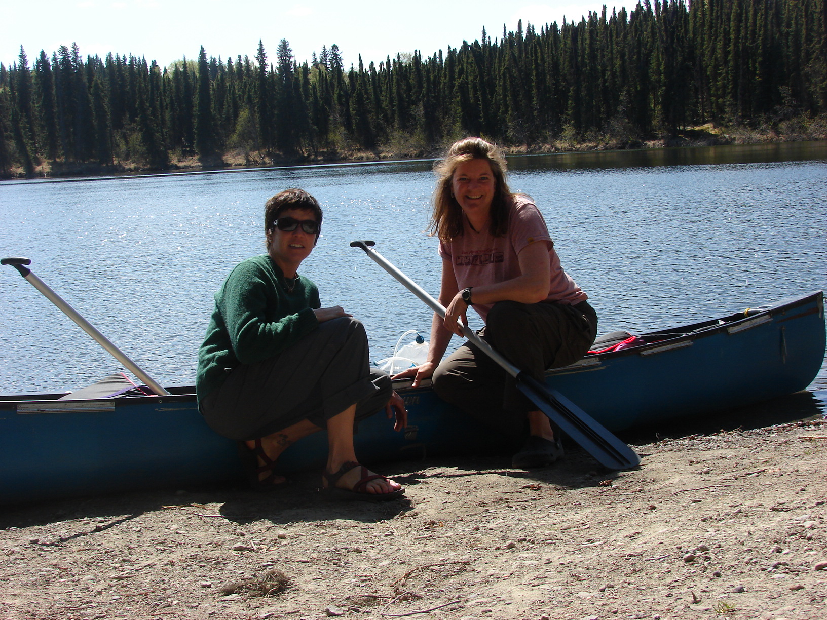 What a gorgeous three days we had canoeing and camping on the Swanson Lake Canoe Trails on the Kenai Peninsula.  Sunny.  Blue skies.  Not a cloud to be seen.  Temps in the low to mid 70’s.  Wow!  Our trip took us across 7 of the many lakes  with 1/4 -1/2 mile portages in between and back again.  We had an old-time Old Town canoe which weighed 78 pounds empty and caused us to double portage each time.  Once with the canoe and once again with our stuff.  What a work out, but it was all good as we had no particular plan and all the time in which to do whatever we chose.