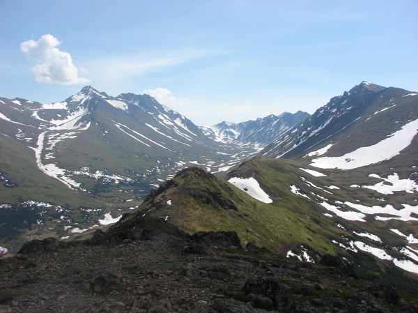 Another sunny day in Anchorage.  The plan today was to hike up one of the smaller area mountains called Near Point.  The trailhead is about a 15 minute drive from the nearest Wal-Mart and the peak is about a 2-2 1/2 hour hike from there.  The reason I say its 15 minutes from the nearest Wal-Mart is to illustrate what can be experienced just out of town.  The running  joke is that Anchorage is 15 minutes from Alaska.