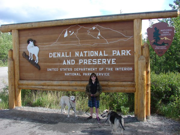 Aaron, Misty, Mosely, and I left Anchorage last Sunday morning and arrived at the Riley Creek Campground about 5 hours later.  Fortunately the first real trip in Dora was pleasantly uneventful.  I’m becoming an excellent RV driver.  (cue music from the movie, Rain Man)  The Riley Creek Campground is located just inside the entrance to the Park and was our home for the first night.  After checking in and setting up our little spot which involved backing up all 36.5 feet of Dora, we explored the campground, took a quick hike with the dogs, fixed mac and cheese, salad, and brownies for dinner (we had all of Aaron’s favorites on this trip) and went to the Ranger talk on Shadow Cats otherwise known as Lynx.  Just lovely.  I’ve got to tell you, this is the first time I’ve “camped” in an RV and hands down, its got sleeping on the ground beat by a mile.