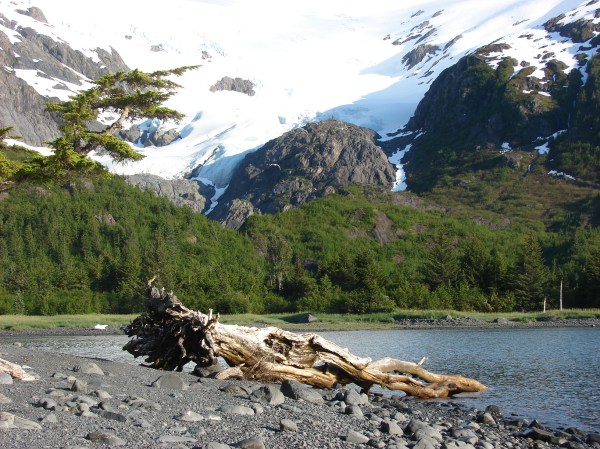 The beach was littered with “Alaska-style” driftwood.