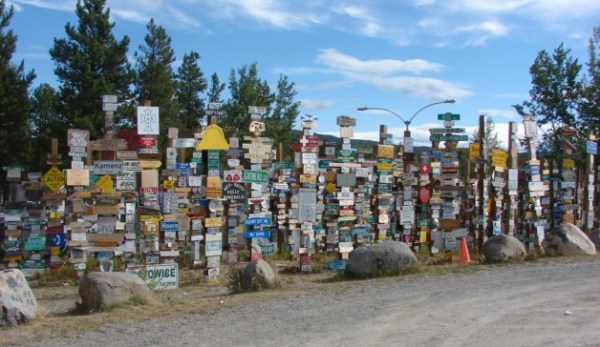 What a difference it makes to have a shortened day on the road.  Just lovely.  I left the pretty wayside lake just after 7:30 in the morning and pulled into Liard Hot Springs at around 3pm having stopped off in Watson Lake for a couple of hours in the middle. While in Watson Lake I visited the famous Sign Post Forest which now consists of over 6,700 signs and was started by  a US Army soldier who was here building the Alcan Hwy back in 1942 and it has grown from there.  I also walked the dogs, visited the visitor’s center/museum, got gas, and poached somebody’s wireless internet and had a fine time all round.