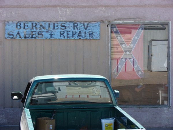 Here is Bernie’s RV Sales & Service, and yes, that is a confederate flag.