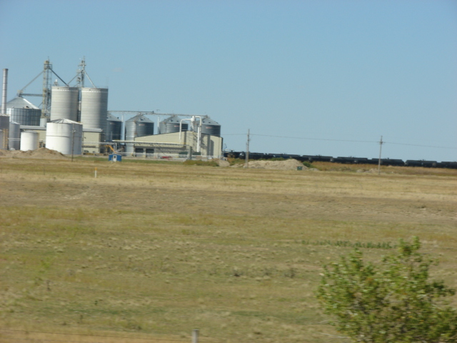 I saw these grain depots every 20 miles or so.  Notice the train pulled up to the right.