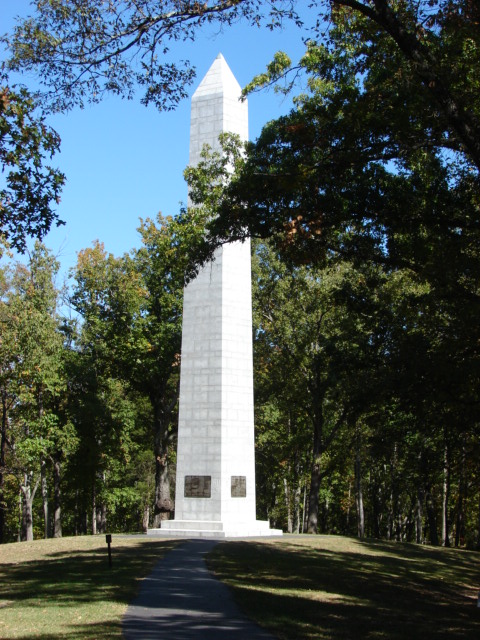 There are two monuments on top of the quarter-mile long ridge where the battle came to a climax with the Patriots finally making the ridge and pinning the Loyalists in a crossfire.  The first, pictured below, was erected by the descendents of those who fought and the second one, strongly resembling the National Monument in DC, was erected by the US government to commemorate the battle.