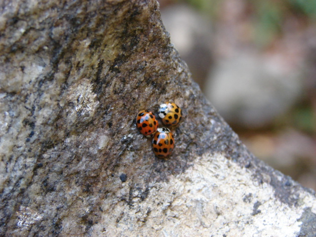 And here are some Ladybugs hanging out on a rock below the Falls.  Does anybody remember MistyMoo in her Ladybug Halloween costume?