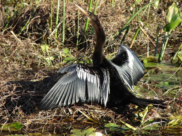 This bird is called an Anahinga with the nickname of snakebird since its head and neck stretch and writhe about like a snake.