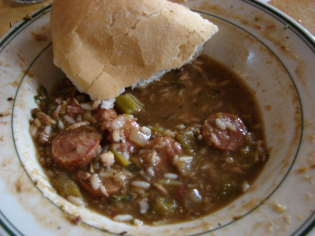 For lunch I wanted a Muffalleta from Central Grocery or Gumbo from The Gumbo Shop and since both are well known to locals and tourists alike, both were extremely crowded with lines down the block. Whatever. I just kept walking around and got lucky at the Gumbo Shop and hit it when there was only a party or two in front of me. While eating a delicious bowl of chicken and andouille sausage gumbo, I enjoyed a chat with my friend Marilyn and met the nicest couple at the table beside me.