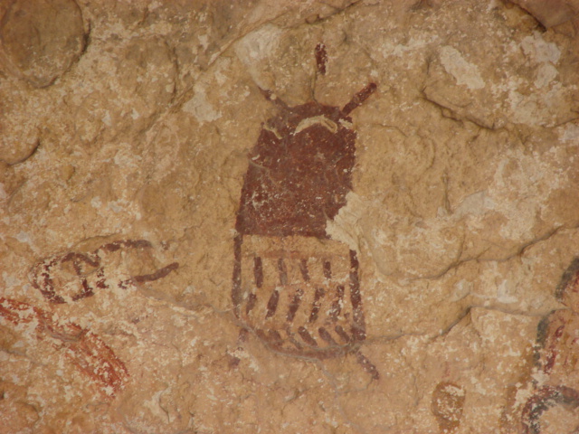 This morning I took the tour of Seminole Canyon which included Fate Bell Shelter and the pictographs therein and I’m pleased to report that I found the tour most interesting and the pictographs impressive though they have been severely damaged by both the elements and man. In a nutshell, the Fate Bell Shelter was used for 8,000 years by the hunters and gatherers of the area dating back to 7,000 bc to 1,500 ad. Cool, huh? For anyone interested in learning more, click here http://www.tshaonline.org/handbook/online/articles/bbf01