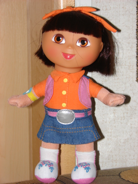 My friend Sue suggested the apt name and it stuck.  AND, drum roll please, when Sue and Iwere enjoying a going away breakfast yesterday, she gave ma a Dora doll!  How wonderful!  Now I have a mascot who I feel sure will enjoy some celebrity on the pages of my ongoing blog.  Say hello to Dora The Explorer.   Don’t you just love her little denim skirt with the topstitching?